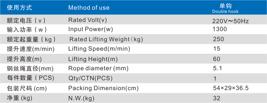 悬挂式电动葫芦,安装使用方便;采用旁磁制动器,制动安全可靠;提升高度为60m,运行速度更快。